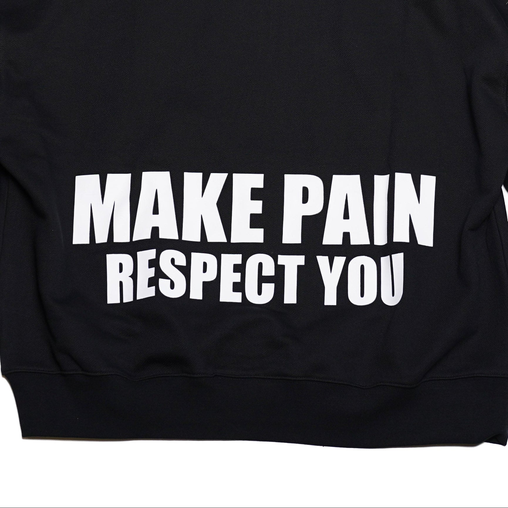 ● Large plastisol back print: MAKE PAIN RESPECT YOU